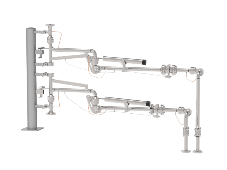 顶部双硬管装卸,专用汽车环氧乙烷等产品的装卸作业,垂管接口可以采用法兰或干式接头连接。