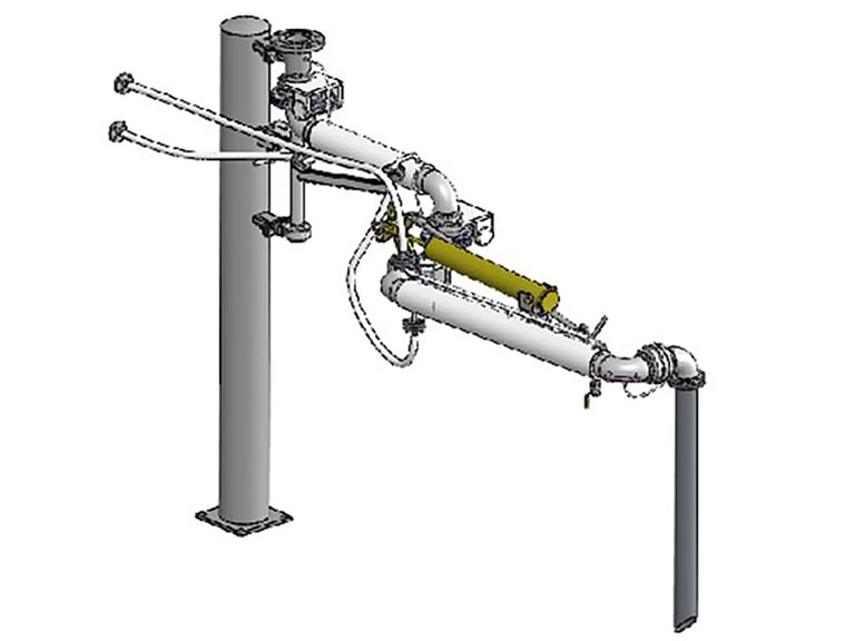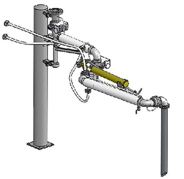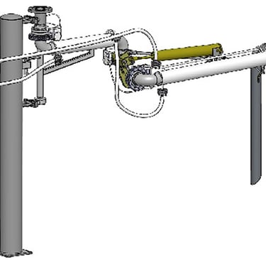 主要针对凝点高流动性差的沥青、渣油、液硫等介质装车作业,对介质起到加热保温的作用。采用双层管道工艺,夹套内可通蒸气或热油进行伴热,伴热管道旋转接头、弯头部位使用金属软管连接。若现场条件受限,我公司可根据客户需要特制电伴热鹤管。